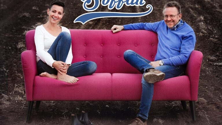 Mitt i allt sitter jag i en cerisefärgad soffa mitt ute på en nyharvad åker tillsammans med Nanna och bakom kameran står Jessica och försöker fånga en inbjudande känsla till denna reklamposter.